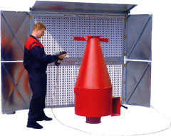 The filtering paint station should be connected with fan, which serves for one device extraction, or to the main collecting